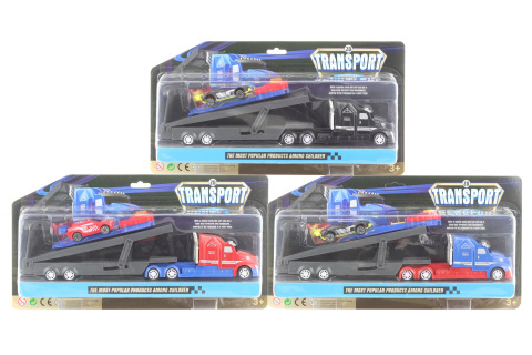 Plastový kamion s vystřelovací plošinou a autíčkem. Rozměr kamionu cca 32 x 7,5 x 4,5 cm a autícko o rozměru cca 7,5 x 2 x 2,5 cm. Rozměr balení cca 36 x 19 x 6 cm. Věk 3+ číst celé