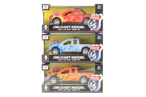 Kovové autíčko jeep pick-up o rozměru cca 12 x 4,5 cm na zpětný tah. Autíčku se dají otevírat dveře. Rozměr balení cca 15 x 7 x 7 cm. Věk 3+