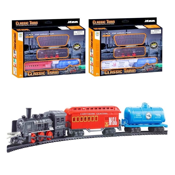 Klasický vláček na baterie se světlem. Balení obsahuje 2ks vagónků, lokomotivu a 10ks kolejnic. Hračka vyžaduje 2ks 1,5V baterií typu AA, které nejsou součástí balení. Možnost výběru ze dvou druhů - dvě cisterny nebo cisterna a vagón. Nevhodné pro děti do 3 let.Rozměr dráhy - 68 x 68cm / délka...