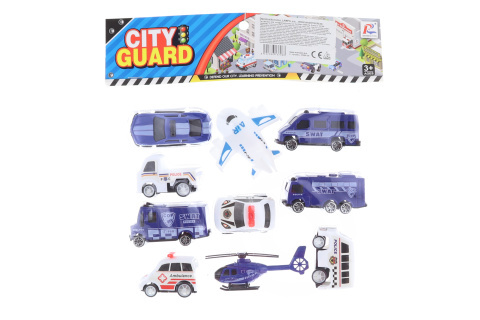 Sada policejních aut obsahuje 7 policejních plastových aut,1x sanita, 1x letadlo a 1x helikoptera.Velikost prostředků cca 6 cm.Rozměr balení 20,5 x 23,5 cm.Věk 3+ číst celé