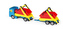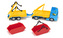 Piasek, kamienie czy gruz ciężarówka z kontenerem budowlanym i przyczepą może sporo zabrać! Pojazdem ciągnikowym jest dwuosiowa ciężarówka z metalową kabiną, natomiast przyczepa posiada podwozie z osią tandemową i metalową platformą. Na ciężarówce i przyczepie można przewozić po jednym kontenerze. Urządzenie do odstawiania w obu częściach pojazdu jest ruchome, dzięki czemu kontenery można bardzo łatwo ładować i rozładowywać. Lekkobieżne koła w całym zestawie zapewniają mobilność i ułatwiają manewrowanie. Jaskrawoczerwone kontenery tworzą uderzający kontrast z niebieską ciężarówką z żółtymi ramionami do odstawiania kontenerów. Dzięki temu kolorowemu i wszechstronnemu zestawowi pojazdów można tworzyć coraz to nowe scenariusze na placu budowy!
