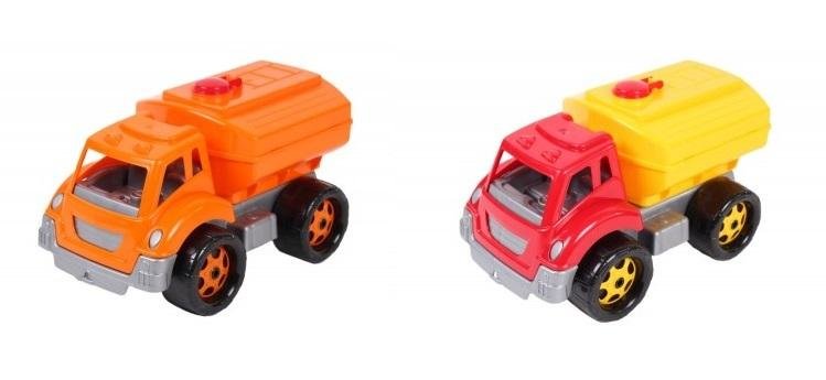Wykonany jest z mocnego, bezpiecznego tworzywa sztucznego. Zabawkowa ciężarówka na benzynę TechnoK jest dostępna w różnych kolorach: ciężarówka na benzynę z czerwoną kabiną i żółtym zbiornikiem lub jasnopomarańczowa.