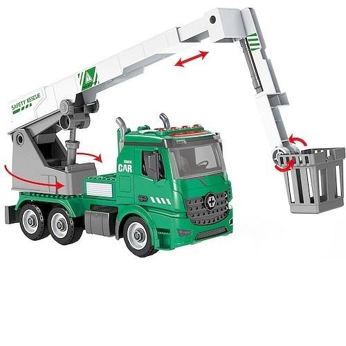 Auto służby miejskie z koszem na wysięgniku. Auto jest kompatybilne z popularnymi klockami, wydaje realistyczne dźwięki , świeci.