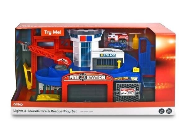 Zestaw zawiera: ręczny podnośnik, który transportuje dwa dołączone do zestawu pojazdy prosto na tor do następnej misji, obrotową drabinę z funkcją rozpylania wody, więzienie i wiele więcej.