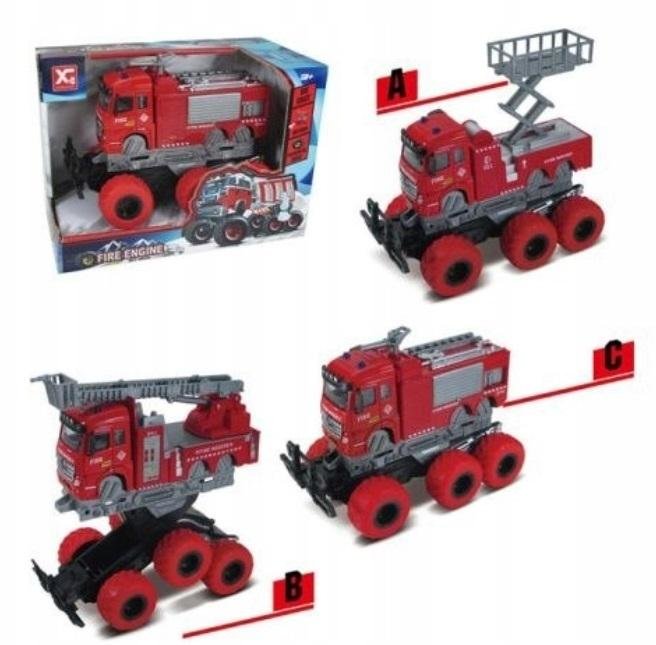 Metalowo-plastikowy pojazd z wieloma wiernie odtworzonymi detalami nadwozia i podwozia. Pojazd posiada 3 komplety kół imitujące pojazdy ""wszedłszy"". Do pokonania trudnego terenu pojazd się podnosi (rozkłada). Zabawka dla dzieci powyżej 3 lat.