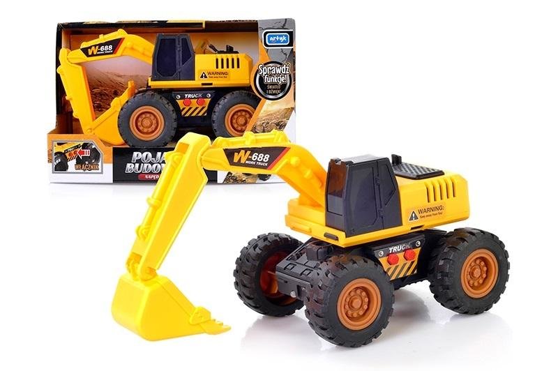 Funkcje: dźwięk pracy silnika, dźwięk klaksonu, światła ostrzegawcze, ruchome ramię koparki.