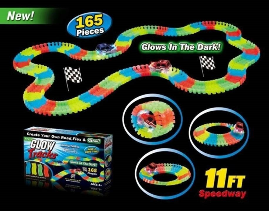 Dráha svítící ve tmě + autíčko s LED světlem 165 ks