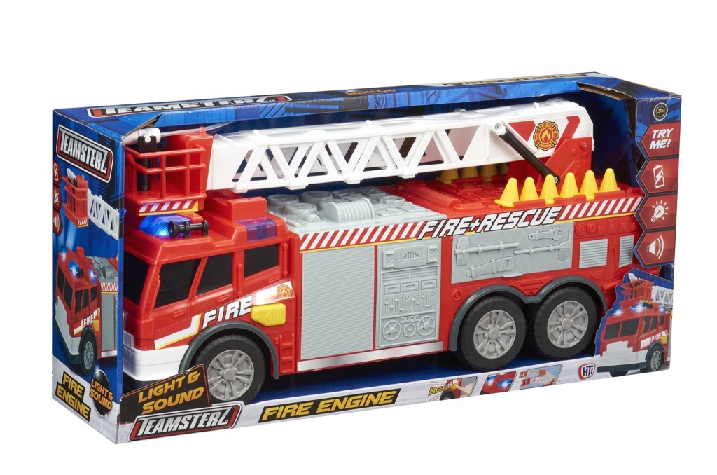 Toto hasičské auto se vyznačuje volně se pohybujícími koly, nouzovými modrými blikajícími světly a zvuky sirén, světlometů a zvuků motoru. Použijte dopravní kužely a zvedněte žebřík, vytáhněte jej a poté jej otočte o 360°, abyste nasměrovali trysku hadice a uhasili požár - stejně jako skutečné hasičské auto! Perfektní dárek pro každého malého nadšeného řidiče, který nabízí hodiny nápadité zábavy! Napomáhá rozvoji sociálních dovedností a jemných motorických dovedností vašich nejmenších, protože toto vozidlo má ideální velikost pro hraní. Vhodné pro věk 3+.