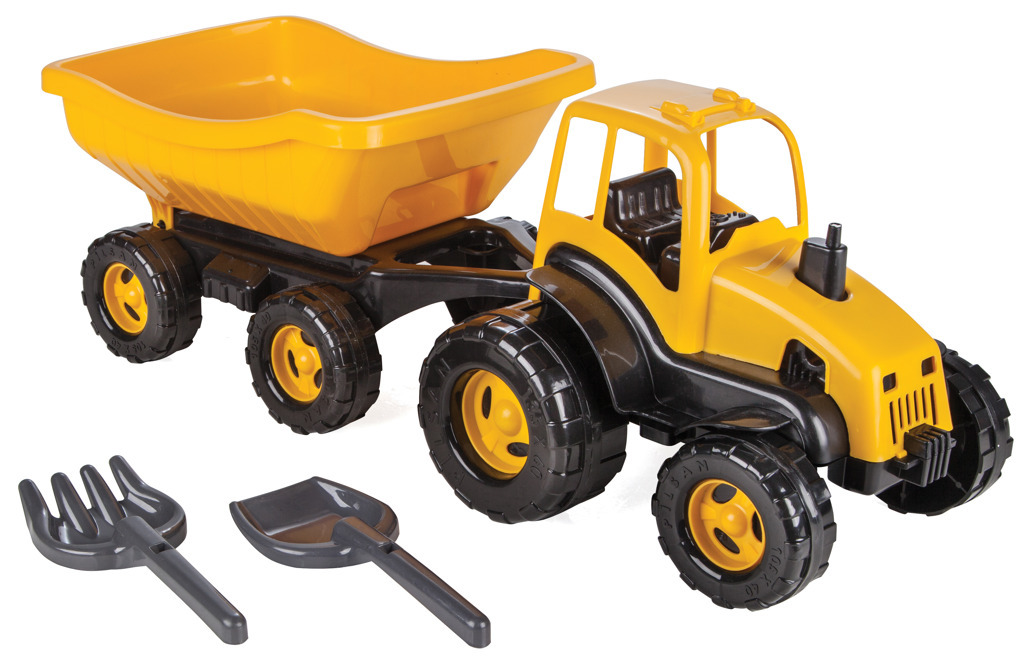 Traktor s vaníkem + hrabičky a lopatka. Vhodné pro domácí i venkovní použití. Délka traktoru s valníkem je 71,5 cm. Valník je lehce odmontovatelný. Splňuje nejpřístnější normy EU. Vyrobeno ze zdravotně nezávadného materiálu. číst celé