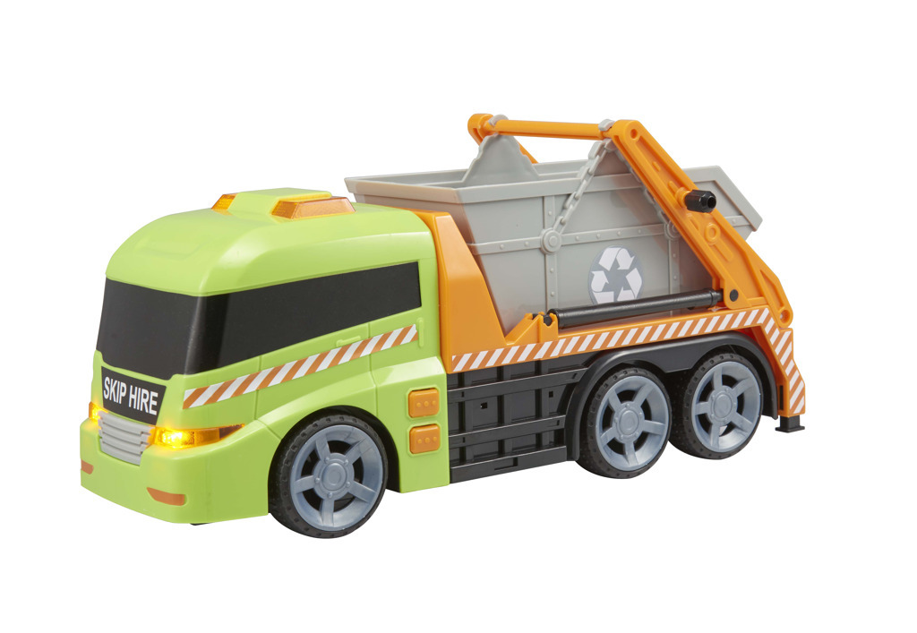 Popelářské auto s kontejnerem, které svítí a vydává zvuky. Výrobek vyžaduje 3× AAA baterie. Vhodný pro děti od 3 let. číst celé