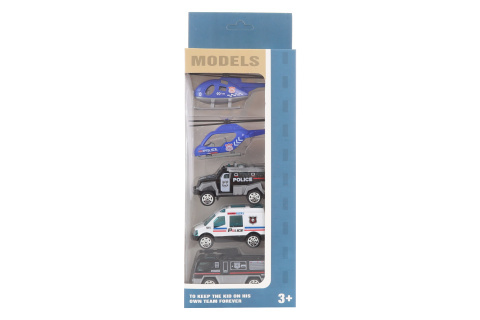 - Obsah balení: 2 kovové helikoptéry, 3 kovová policejní auta
