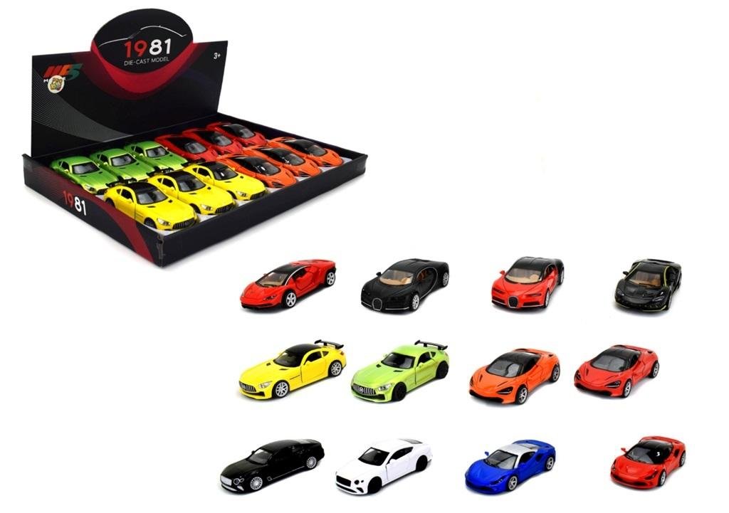 Samochód metalowy 1:32 SPORT MIX DISPLAY wykonany jest z dbałością o najmniejsze szczegóły w skali 1:32. Metalowe wykonanie chroni przed uszkodzeniami zabawki. Autka mają otwierane drzwi.
