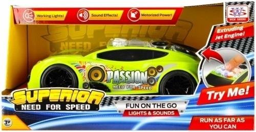 Zalety produktu: auto wyścigowe na baterie , posiada efekty dźwiękowe oraz świetlne, zabawa tym autem na pewno przypadnie do gustu każdemu, małemu i dużemu Fanowi motoryzacji! Auto posiada gumowe koła. Znudziła Cię zabawa zwykłym autem? MEGA CREATIVE ma coś dla Ciebie! Auto zadowoli nawet najbardziej wymagające dziecko! Zawartość zestawu: samochód wyścigowy. Wymiary/waga/baterie wymiary produktu (dł. x wys. x gł.)[cm]: 25x8x12, wymiary opakowania (dł. x wys. x gł.) [cm]: 33x17x14, waga produktu bez opakowania [kg]: 0,45 kg, waga produktu z opakowaniem [kg]: 0,60 kg, wymaga zasilania bateriami 3x AA 1,5V- załączone do zestawu. Produkt przeznaczony dla dzieci w wieku: 3+