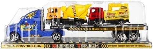 Zalety produktu: pojazd posiada funkcję pull back dzięki czemu po pchnięciu pojazdu do przodu kontynuuje jazdę samodzielnie, posiada samochody budowlane na Lawecie , samochody posiadają ruchome elementy, występuje w dwóch wersjach kolorystycznych. Auto ciężarowe MEGA CREATIVE zapewni dziecku wspaniałą zabawę dzięki możliwościom jakie posiada! Idealny samochód dla każdego fana motoryzacji! Ciężarówka w formie Lawety, która przewozi samochody Budowlane. Zawartość zestawu: ciężarówka Laweta, 2 x samochody budowlane. Całość wykonana z plastiku. Wymiary/waga/baterie: wymiary produktu (dł. x wys. x gł.)[cm]: 49x12x8, wymiar opakowania (dł. x wys. x gł.) [cm]: 52x16x10, waga produktu bez opakowania [kg]: 0, 57 kg, waga produktu w opakowaniu [kg]: 0,87 kg, nie wymaga zasilania bateriami. Zabawka przeznaczona dla dzieci w wieku: 3+. Zestaw zapakowany w przeźroczyste opakowanie.