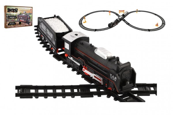 Vlak/Lokomotiva + 2 vagóny s kolejemi 23ks plast na baterie se světlem v krabici 36x25x5cm