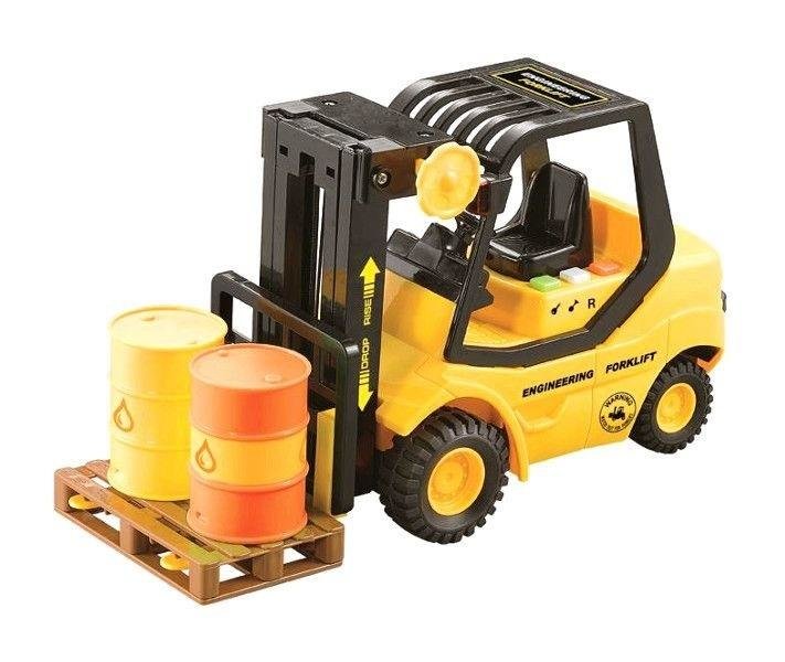 Plastikowy wózek widłowy ze światłem i dźwiękiem. Wózek wydaje dźwięki zapalania silnika i klaksonu. Ponadto posiada korbkę i może unosić pakę do góry i na dół. Produkt działa na baterie typu AG13. Baterie znajdują się w zabawce. Produkt zapakowany w kartonowe opakowanie z okienkiem. Podane...