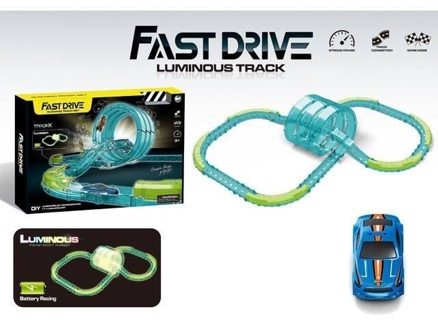 Tor z pętlami i autkiem ze światłem. Autko ładowane z USB. Rozmiar toru: 111 x 48 x 26 cm. číst celé