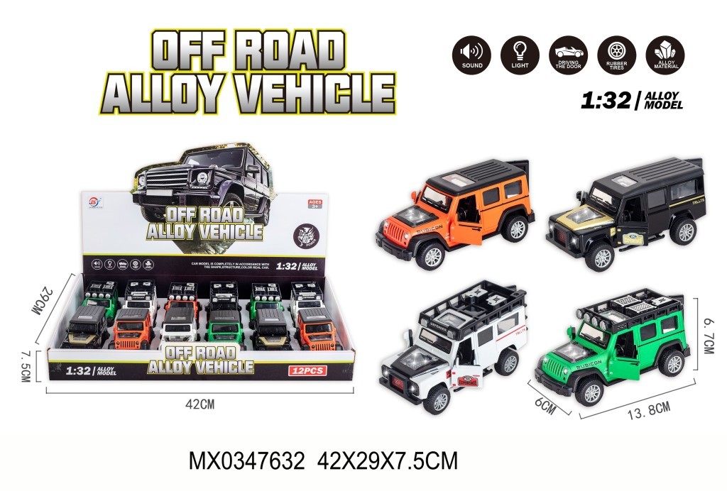 Off road slitinové autíčko. Světlo, zvuk, otevírání dveří, gumové pneumatiky, slitinový materiál. číst celé
