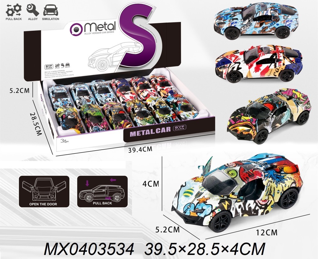 Tento pevný kovový model auta je dostupný ve čtyřech unikátních designech, které lze měnit podle nálady. Dveře auta lze otevírat, takže děti mohou vytvářet vlastní příběhy a rozvíjet svou fantazii. Díky funkci pull back - natáhni a jeď si dítě užije akční jízdu bez nutnosti baterií, což znamená, že zábava nikdy nekončí.