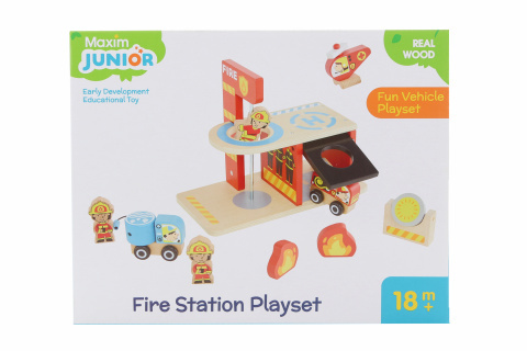Hasičská stanice. Rozměr: 13x26x20cm Set obsahuje: Budovu s garáží a hasičskou tyčí, 2x auto, 1x vrtulník, 3x figurka hasiče, reflektor, 2x oheň. Vláčkodráhy a doplňky Maxim lze kombinovat se všemi dalšími dřevěnými vláčkodráhami na trhu. Pro děti od 18 měsíců. číst celé