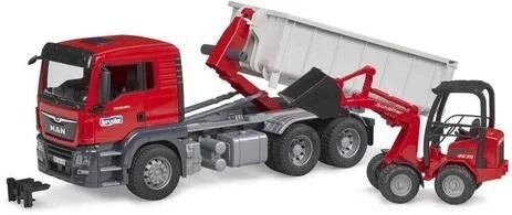 MAN TGS z kontenerem rolkowym i z minikoparką Schaffer. číst celé