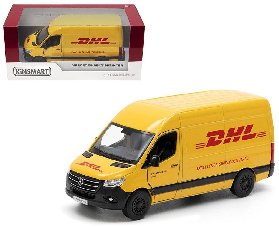 Auto KINSMART mercedes-benz sprinter DHL 1:48 Metalowy model auto bardzo dobrej jakości z napędem wstecznym, otwieranymi drzwiami z oficjalną licencją.