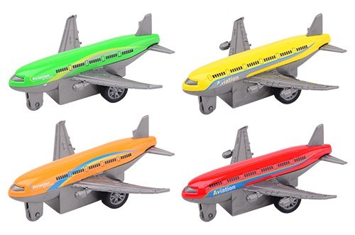 Sada kovových letadel natahovacích 4 ks - čtyři kovová, barevná letadla na natahování (funkce pull back). číst celé