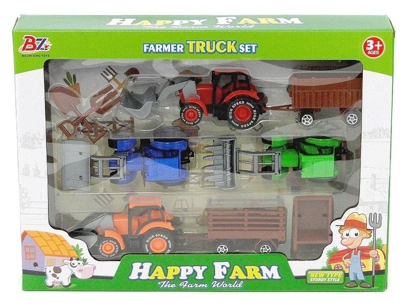 Zestaw farma, 4 traktory, maszyny, narzędzia rolnicze. číst celé