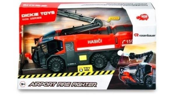 Samochód strażacki Pantera Rosenbauer\'a z wiernie odwzorowanymi detalami prawdziwego pojazdu, w tym kabiny. Straż posiada funkcję światła i dźwięku, ruchome ramie gaśnicze do precyzyjnego gaszenia pożaru oraz funkcję strzelania wodą. Pojazd bez napędu. Funkcja "Try Me", baterie 3 x 1,5...