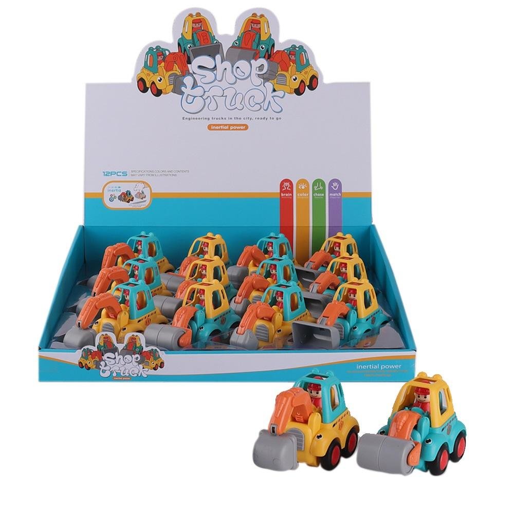 Autko budowlane w trzech wersjach: walec, koparka, ładowarka. Działa na wolne koło. Wymiary autka: 11 x 4.8 x 6.4 cm.