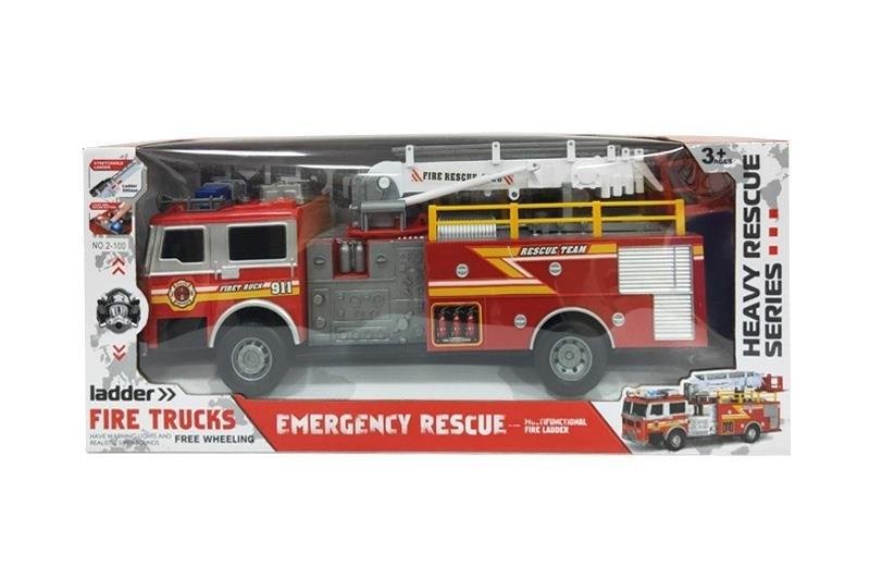 W zestawie: auto 45,5 cm., Funkcje: ruchome elementy, wyciągana drabina, obrót wieżyczki o 360 stopni, napęd frykcyjny, syrena z migającym światłem i dźwiękiem, wym. Opk.: 54 x 22 x 14,5 cm., Baterie: 3 x ag13/lr44 1,5v (załączone baterie testowe), wiek: 3+