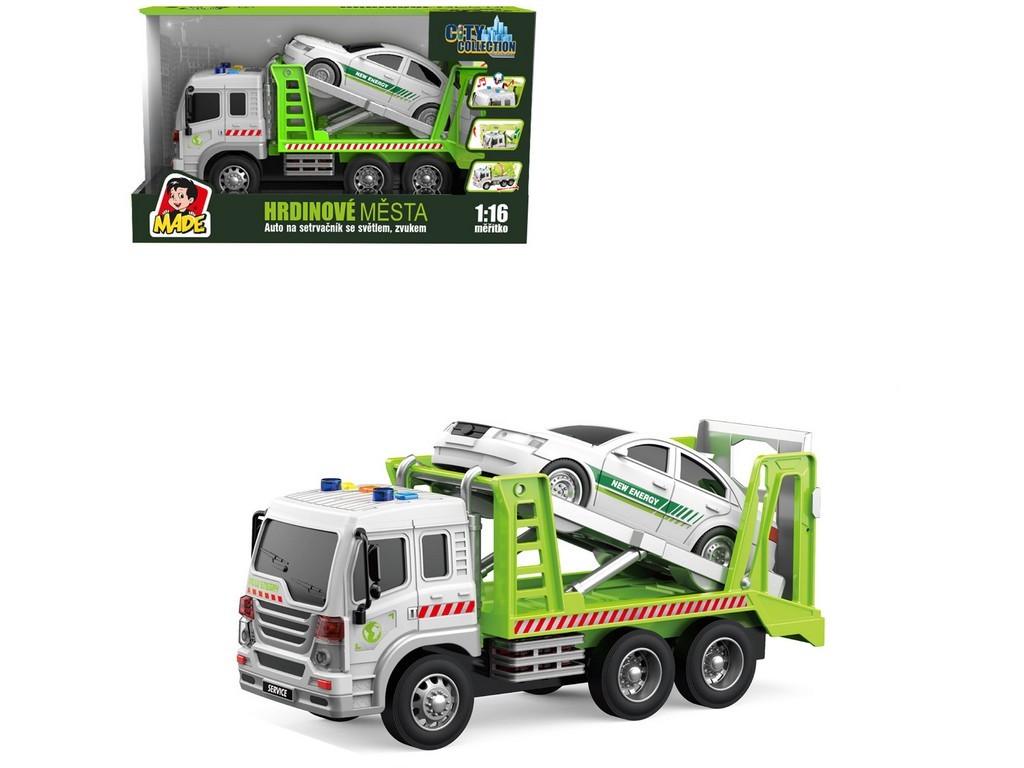 Auto odtahovka s autem, na setrvačník, se světlem a zvukem