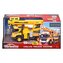 Duży pojazd budowlany Volvo z wysuwanym dźwigiem, wciągarką linową i gumowymi kołami, efektami świetlnymi i dźwiękowymi.