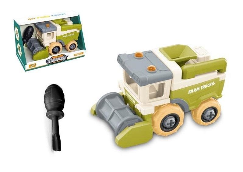 Kombajn do skręcania wraz z śrubokrętem pomagającym dziecku w odkręceniu śrubek w pojeździe. Posiada ruchome elementy. Dziecko poprzez zabawę nauczy się obsługiwać narzędzia przydatne w dorosłym życiu. Produkt dla dzieci od 3 roku życia. Produkt zapakowany w kartonowe opakowanie. Podane wymiary...