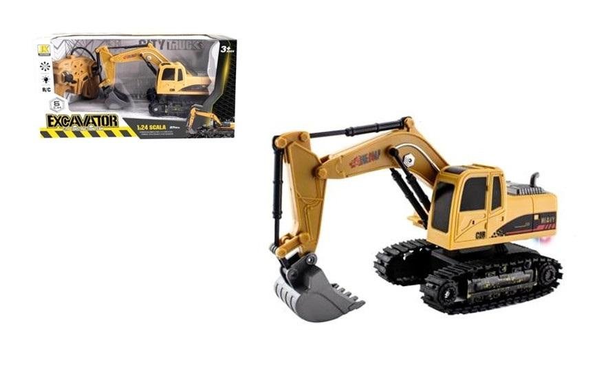 Plastikowa koparka. Zabawka wydaje dźwięki: odpalania maszyny, cofania oraz pracy na budowie przy tym także świeci kolorowymi światełkami. Zabawka działa na baterie AG13. Baterie znajdują się w zabawce. Produkt zapakowany w kartonowe opakowanie z okienkiem. Podane wymiary są wymiarami...