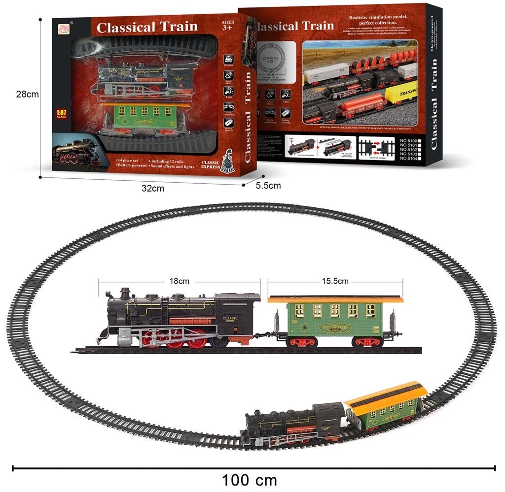 Pociąg-kolejka na baterie w zestawie z torami do złożenia w kształt owalu o szerokości ponad 100cm. číst celé