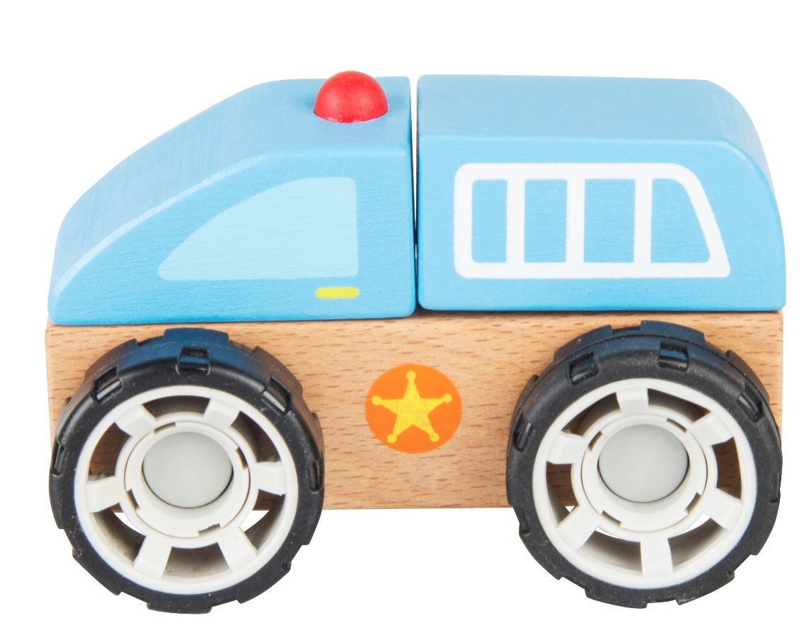 Samochodzik policja wykonany z drewna pomalowanego bezpiecznymi farbami wodnymi. Maluchy uwielbiają autka a gdy dodatkowo można je rozmontować zabawa nie ma końca! Pojazd składa się z kilku elementów, które można oddzielić od niego jak klocki. Połącz elementy kilku samochodzików z tej serii aby stworzyć własny wymarzony pojazd! Zabawka absorbuje uwagę dziecka, pozwala rozwijać zdolności manualne i daje masę frajdy!Dzieci poznają świat poprzez konkretne elementy otoczenia z którymi się spotykają. Każdy produkt marki iWood został starannie zaprojektowany, aby zagwarantować bezpieczeństwo a jednocześnie pozostać atrakcyjnym i absorbować uwagę dziecka. Każda zabawka ma na celu pomóc maluchowi rozwijać inteligencję, zdolności manualne, ćwiczyć ruchy precyzyjne, koordynację oko-ręka i widzenie przestrzenne. Każda zabawka marki iWood rozwija kreatywność, umiejętność opowiadania historii i ułatwia dziecku zrozumienie otaczającego je świat. Zabawa w grupie rozwija bardzo ważne zdolności społeczne i umacnia więzy rodzinne. Zabawki iWood wykonane są z naturalnych w pełni odnawialnych materiałów. Ścisła kontrola jakości na każdym etapie produkcyjnym zapewnia bezpieczeństwo i wysoką jakość.