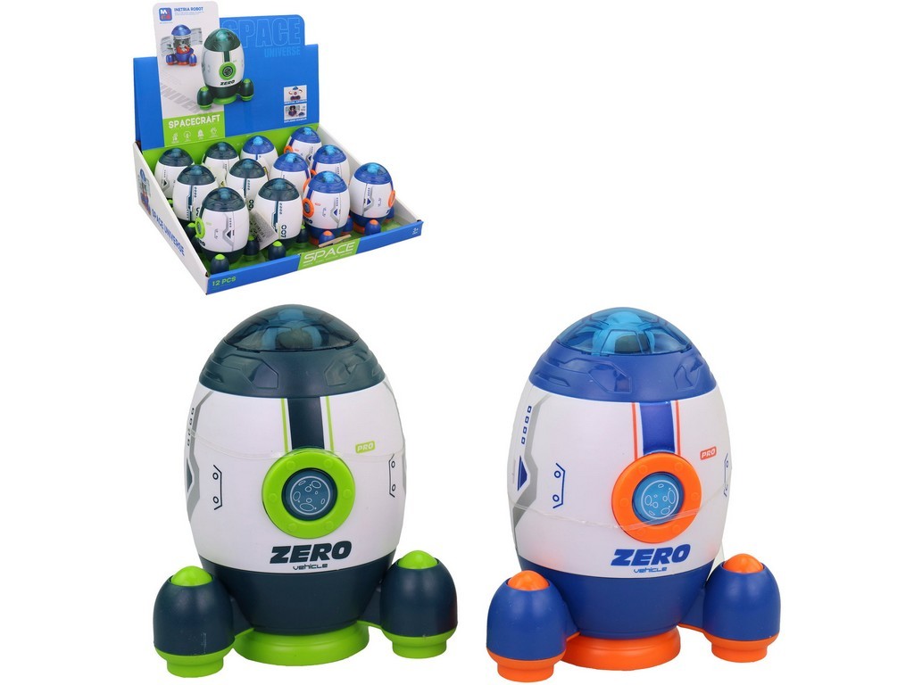 Vesmírná raketa, otvírrací dveře, 12 ks v display boxu, na setrvačníkHračka je určena pro děti 3+.Rozměr hračky je 9 x 9 x 11cm.Materiál hračky je plast.Balení hračky je display box.Produkt je určený pro kluky.Baterie nejsou součástí balení.