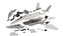W zestawie z każdym modelem znajduje się pełny zestaw łatwych do wykonania instrukcji kolorystycznych, swobodnie toczące się koła do samochodów i czołgów oraz stojaki ekspozycyjne dla wszystkich samolotów. F-35B Lightning II F-35 to jednosilnikowy odrzutowiec naddźwiękowy z najbardziej zaawansowanymi komputerami i możliwościami sieciowymi, które nie zostały jeszcze wzniesione w powietrze, oraz możliwościami ukrywania się, które mają utrudnić wykrycie radaru wroga. Wariant F-35B, który ma wentylator nośny zamontowany za kokpitem, dający odrzutowcowi możliwości krótkiego startu i pionowego lądowania (STOVL), co oznacza, że może zawisnąć jak Harrier. Współpracując z Typhoonem, F-35 będzie operował z lądu, ale co najważniejsze, będzie latał z dwóch nowych lotniskowców Royal Navy Queen Elizabeth.