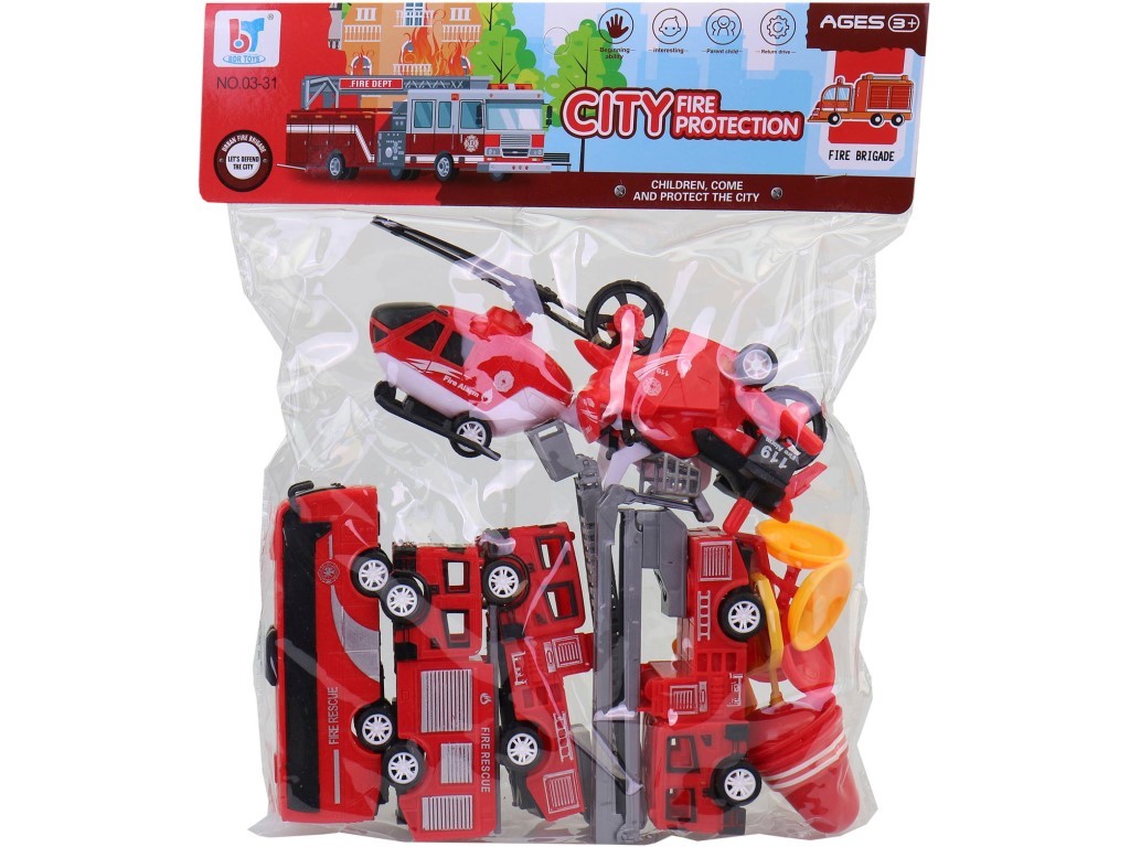 Dopravní prostředky a značení 12 ks, hasičské, 27 x 31 x 5 cm