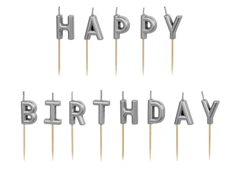 Świeczki urodzinowe Happy Birthday w kolorze srebrnym, wysokość ok. 2.5 cm.(1 op. / 13 szt.) číst celé