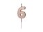 Świeczka urodzinowa Cyferka 6 w kolorze różowego złota na drewnianym patyczku, wysokość cyfry ok. 4.5 cm, wysokość całkowita ok. 9 cm.