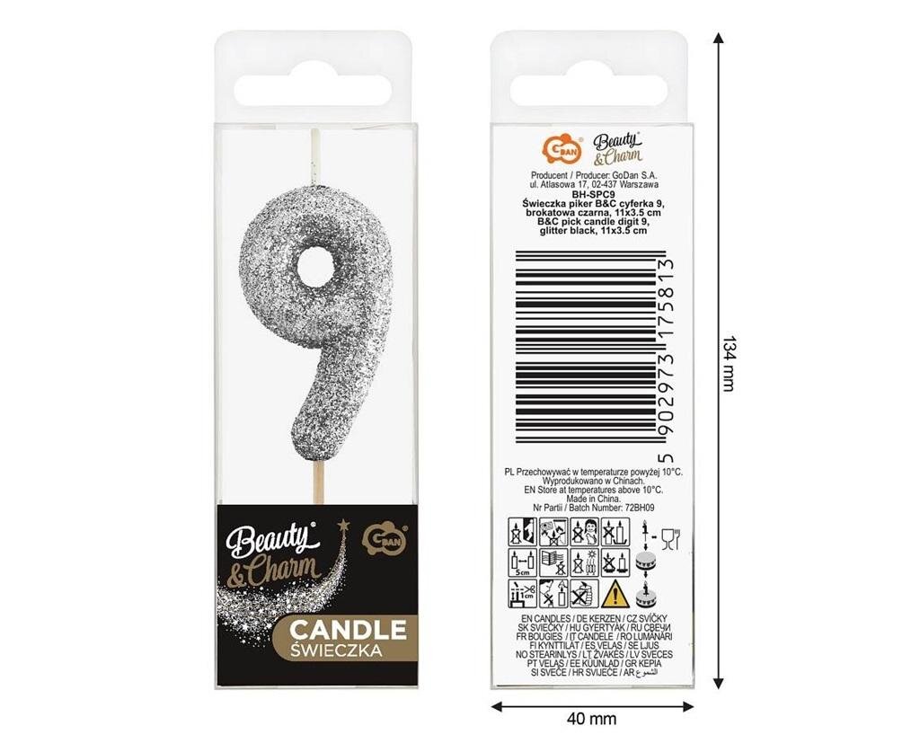 Świeczka piker 9 czarna brokatowa 11x3.5 cm