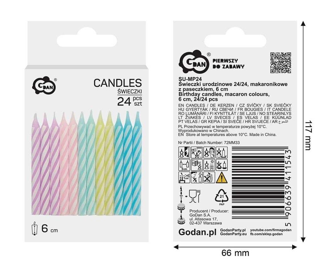 Świeczki urodzinowe makaronikowe 6cm 24szt