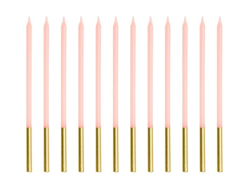 Świeczki urodzinowe gładkie w kolorze różowym, wysokość ok. 14 cm. Zestaw zawiera 12 świeczek.(1 op. / 12 szt.)