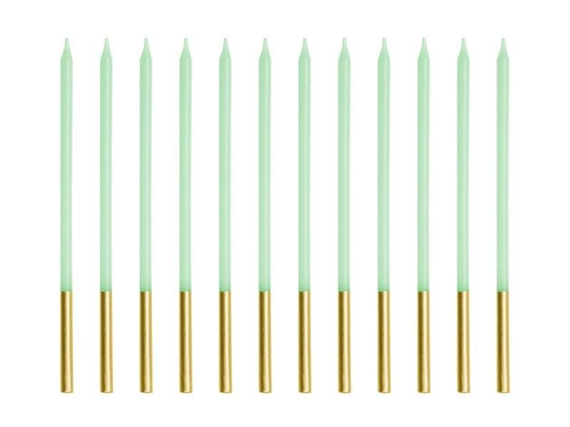 Świeczki urodzinowe gładkie w kolorze jasnozielonym, wysokość ok. 14 cm. Zestaw zawiera 12 świeczek.(1 op. / 12 szt.) číst celé
