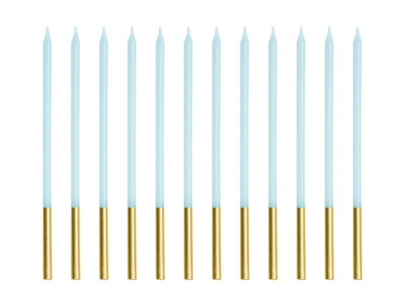 Świeczki urodzinowe gładkie w kolorze jasnobłękitnym, wysokość ok. 14 cm. Zestaw zawiera 12 świeczek.(1 op. / 12 szt.) číst celé