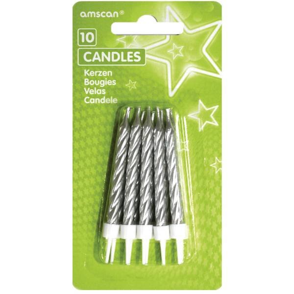 Svíčky dortové 6,3cm spirálové, stříbrné 10ks - Amscan