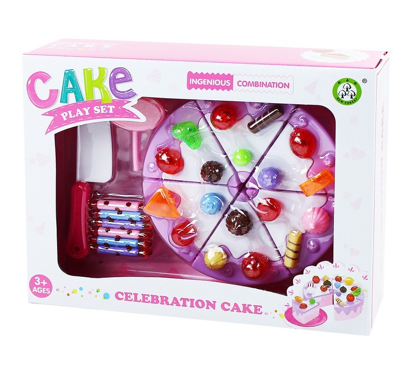 Dortová sada pro malé cukrářky! Sada obsahuje dort se zdobením, plastový nožík a svíčky. Dort lze krájet na jednotlivé kousky, které jsou opatřeny suchým zipem. Vyrobeno z PVC.