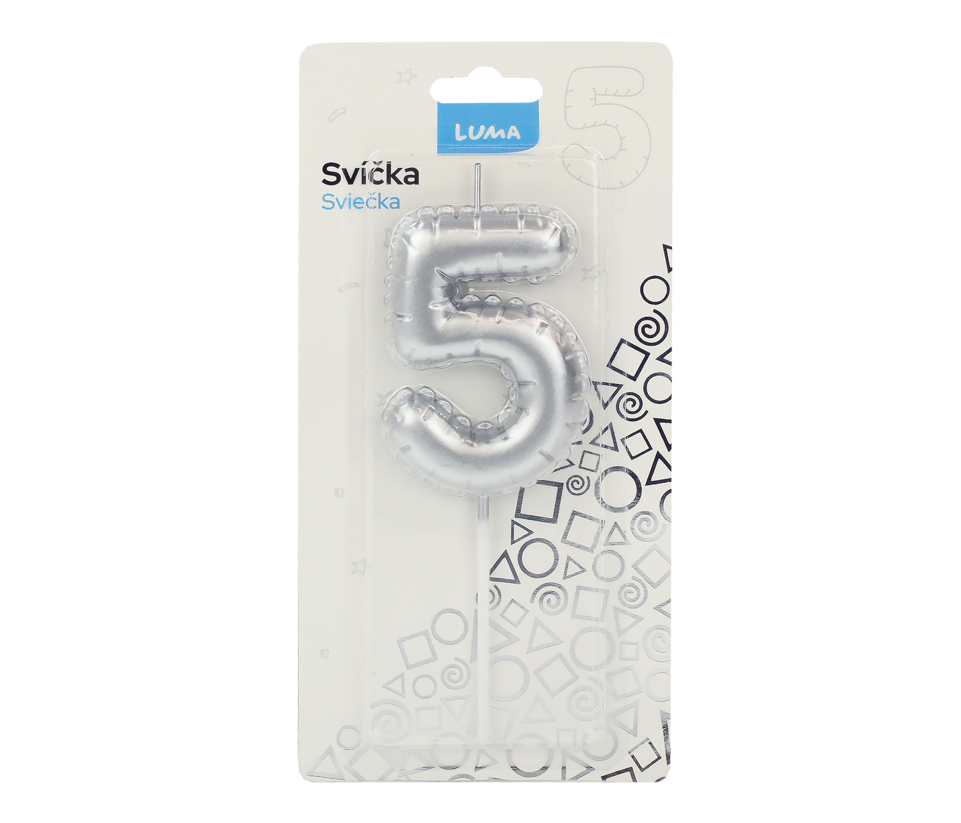 Svíčka č. 5 balónek STŘÍBRNÝ LUMA